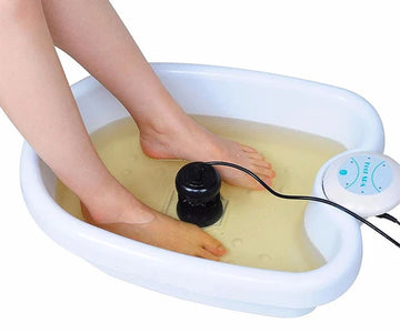 pies. Durante la sesión, sumerges tus pies en un baño de agua tibia
